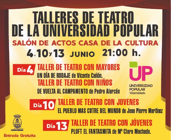 Días 4, 10 y 13 de junio a las 21:00 horas en el Salón de Actos de la Casa de la Cultura