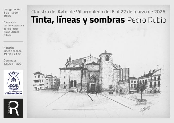 Exposición de pintura “TINTA, LÍNEAS Y SOMBRA” de PEDRO RUBIO 6 de marzo de 2026 / Roble Radio Del 6 al 22 de marzo en el Claustro del Ayuntamiento Inauguración el 6 de marzo a las 19:30 horas Cultura Entrada anterior Teatro Infantil “EL RATÓN PÉREZ Y SUS COLORES MÁGICOS” de Arte Fusión Títeres. Entrada siguiente Presentación del libro “LA DAMA DE LA NIEBLA” con su autora CARLA MONTERO