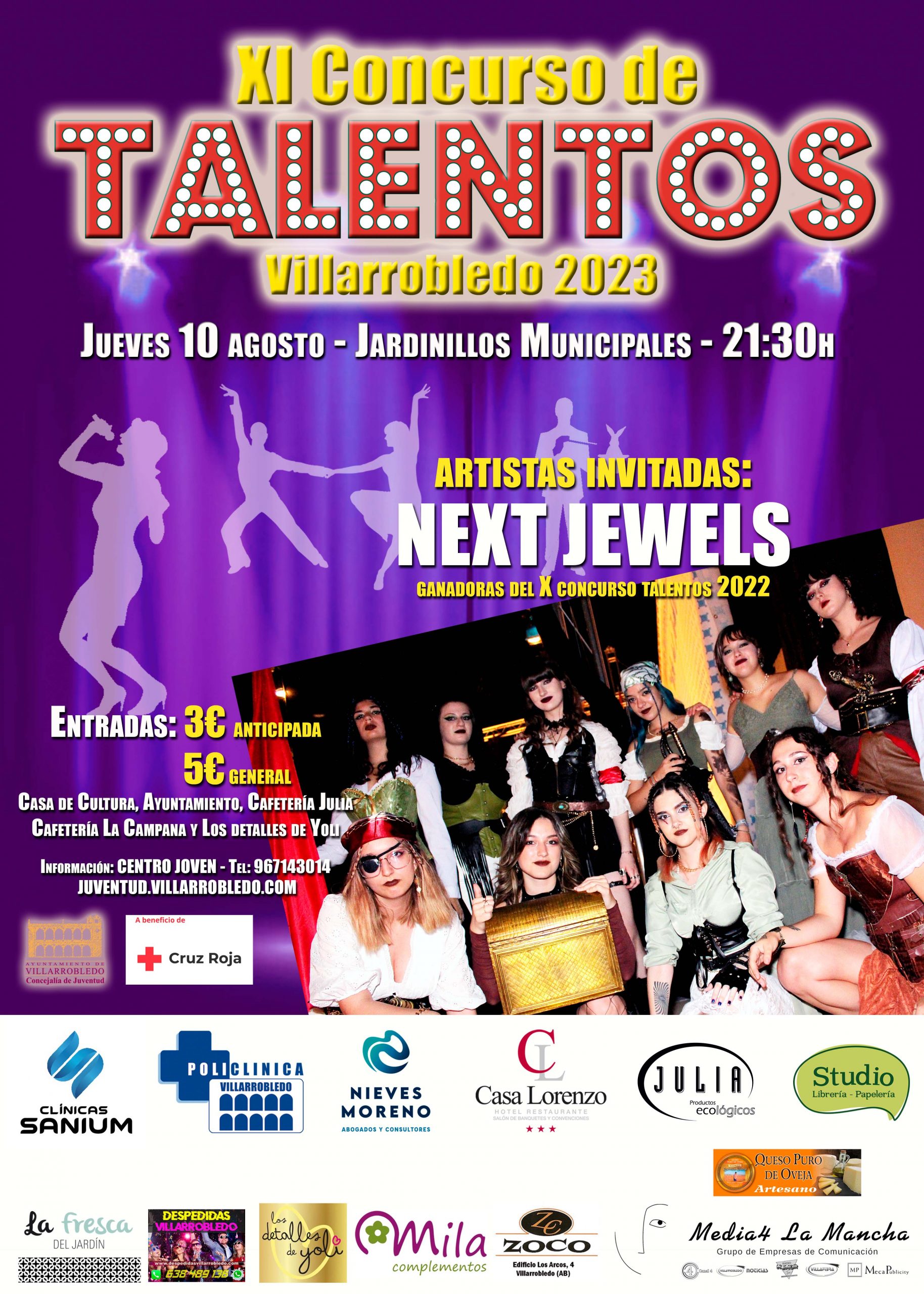 Entradas: 3€ anticipada y 5€ en taquilla. A beneficio de Cruz Roja. Puntos de venta: Casa de la Cultura, Ayuntamiento, Cafetería Julia, Cafetería La Campana y Los Detalles de Yoli